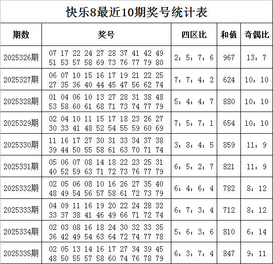 福彩酣畅8第2025335期开出奖号:02 05 13 14 16 17 27 34 39 45 48 50 55 57 58 60 74 76 78 79体育录像/图片,其中奖奇偶比9:11,四区比为6:3:7:4。
