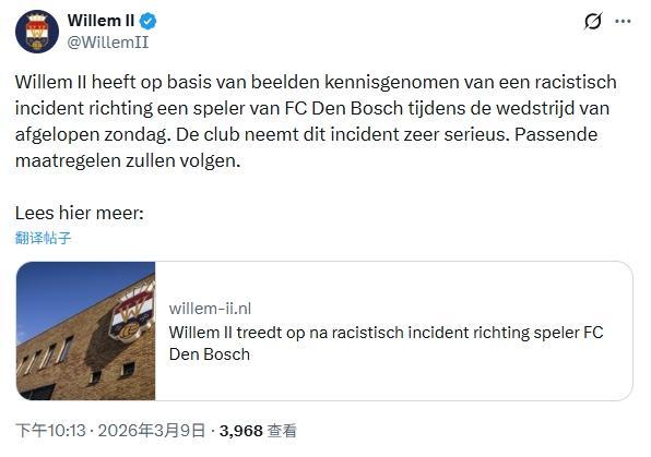 干系阅读:留洋小将王博豪遭种族脑怒!威廉二世官方:向邓伯什及王博豪致歉