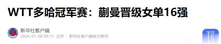 新华社——WTT多哈冠军赛:蒯曼晋级女单16强
