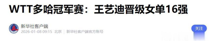 新华社——WTT多哈冠军赛:王艺迪晋级女单16强