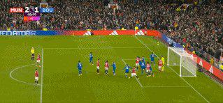 45+4’B费开出角球,卡塞米罗头球破门,曼联2比1。